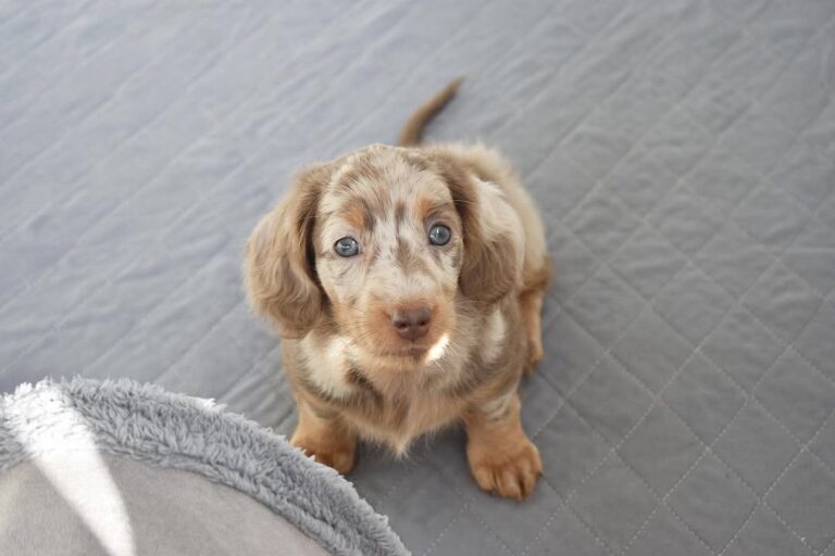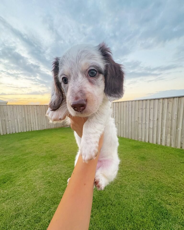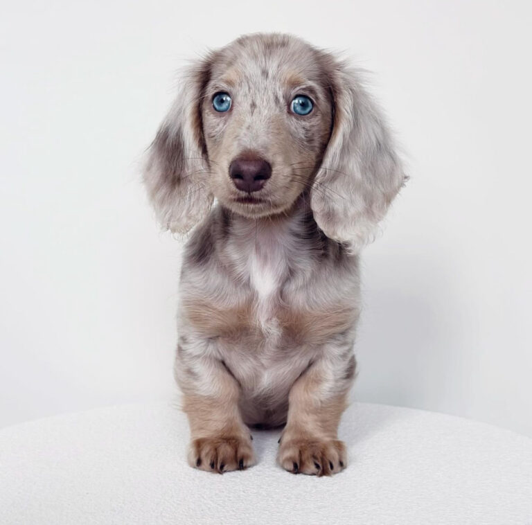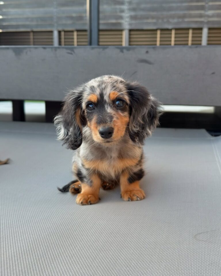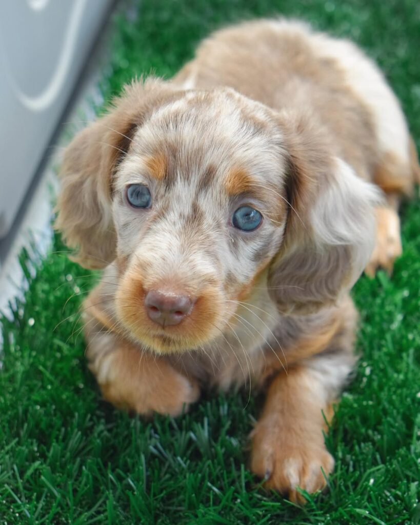Dapple Long-haired miniature dachshunds combine the spunky personality of the classic “doxie” with a touch of elegance. Their silky coats, soulful eyes, and loyal nature make them irresistible companions